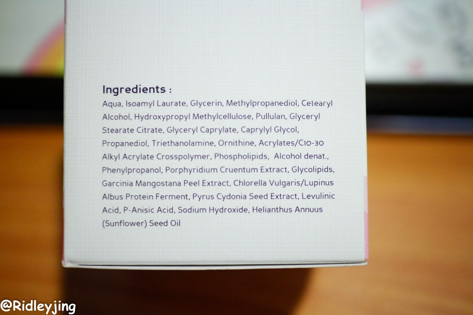 Contain ingredients such as Grape Seed Extract, Soy Isoflavones, Orange Vitamin C Powder, PhytoCellTec Argan, PhytoCellTec Malus Domestica, PhytoCellTec Solar Vitis, Mixberry Powder and Tremella Fuciformis. It helps in breast and hip firming, skin firm, UV protection, skin whitening, anti aging, reduce wrinkles and so on.